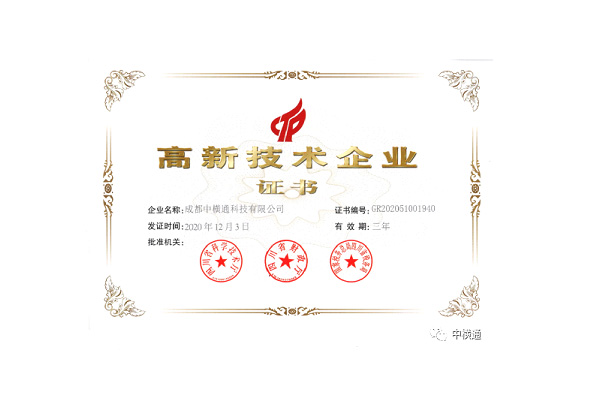 成都中橫通科技有限公司經(jīng)過17年的發(fā)展,不斷開拓創(chuàng)新,追求卓越,于2020年成功通過國家高新技術(shù)企業(yè)認(rèn)定。